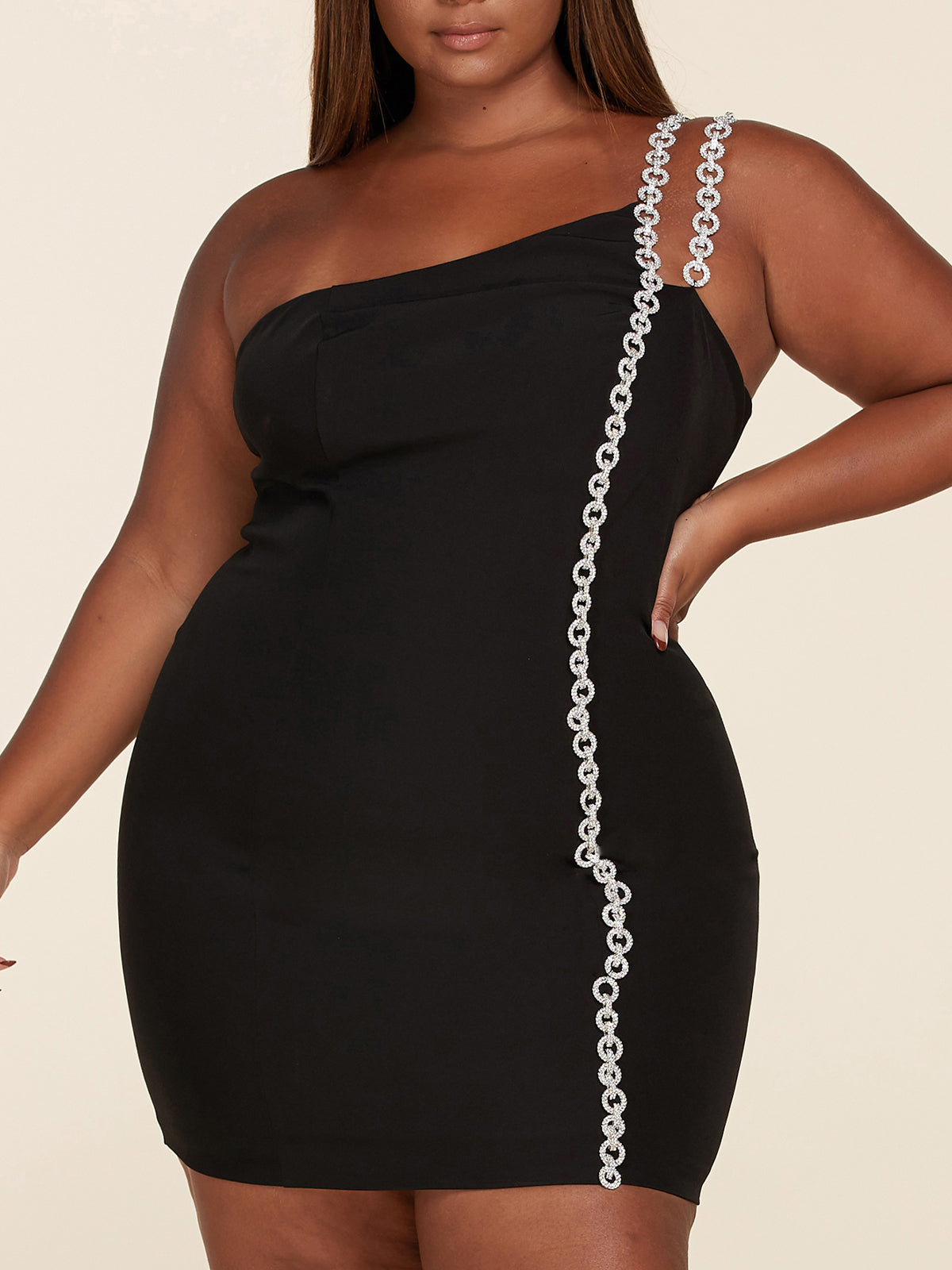 PLUS SIZE SLEEVELESS ONE SHOULDER BODYCON MINI DRESS