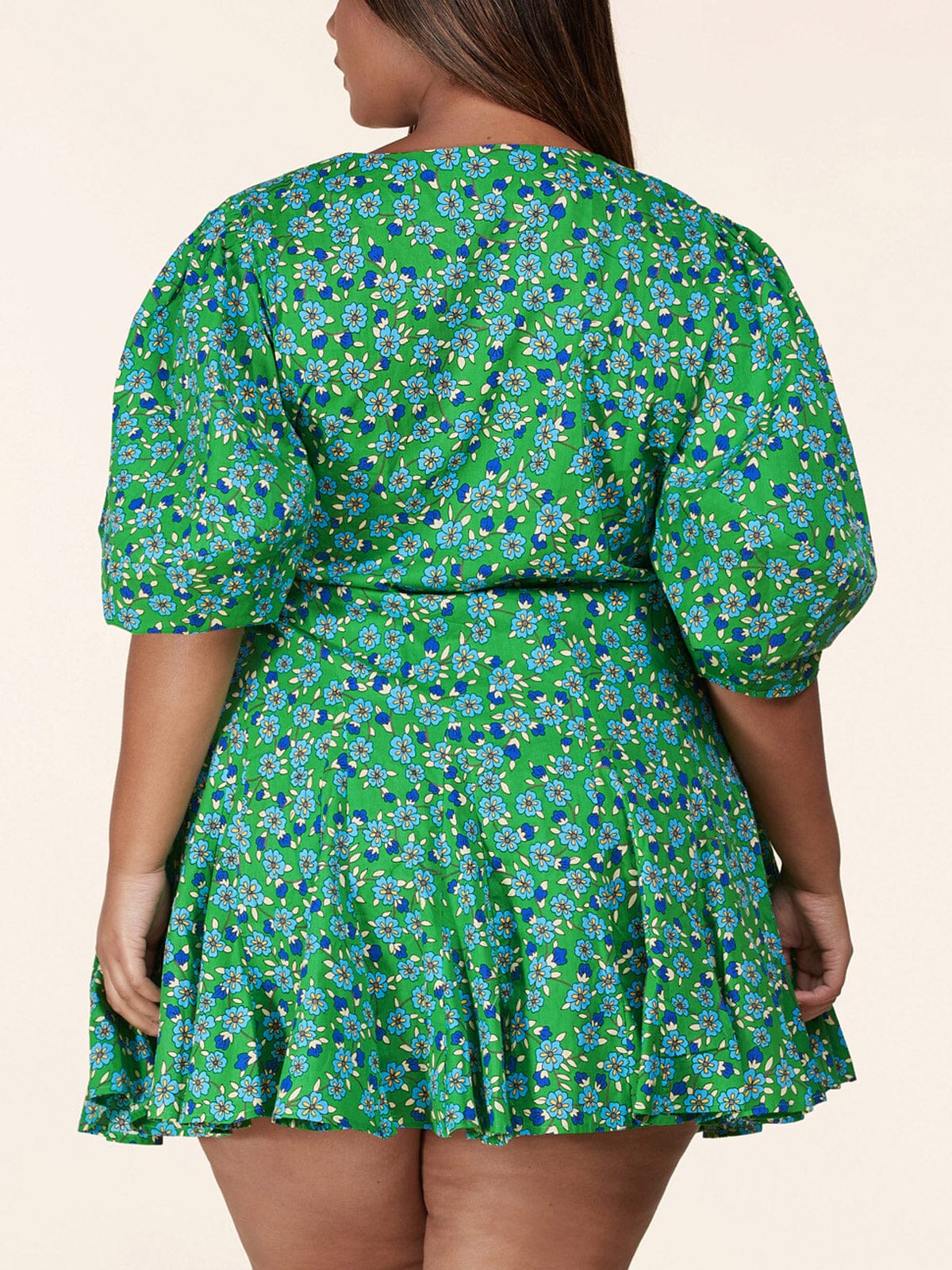 PLUS SIZE 3/4 SLEEVES WRAP FLORAL MINI DRESS