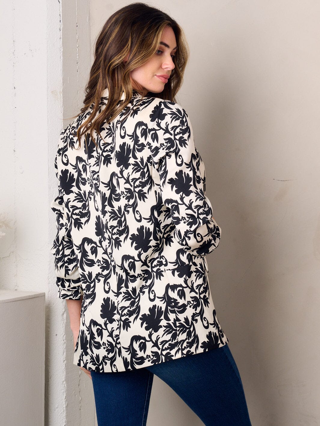 WOMEN'S 3/4 SLEEVE OPEN FRONT MULTI PRINT BLAZER