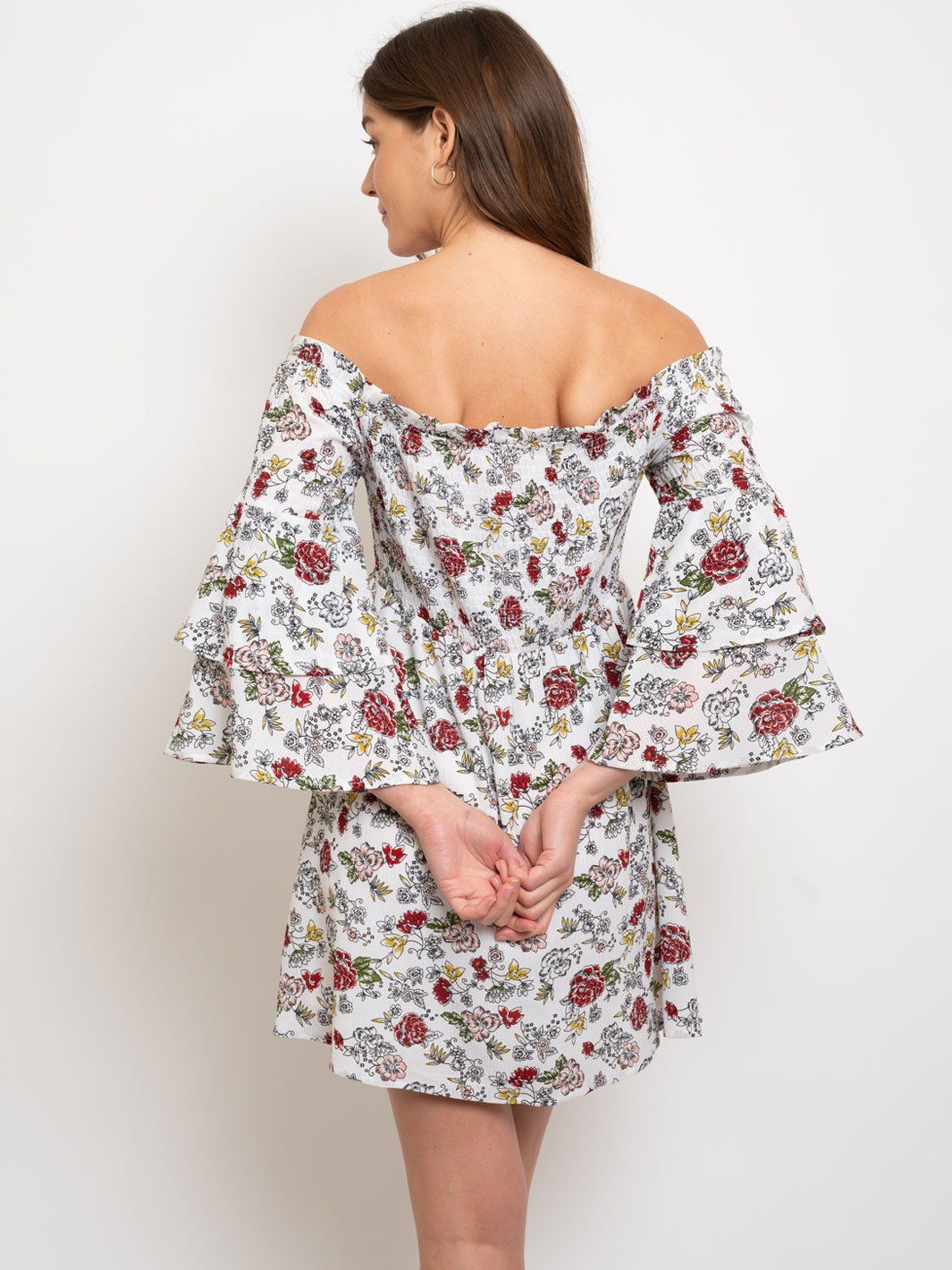 WOMEN'S FLORAL RUFFLE DETAIL OFF SHOULDER MINI DRESS