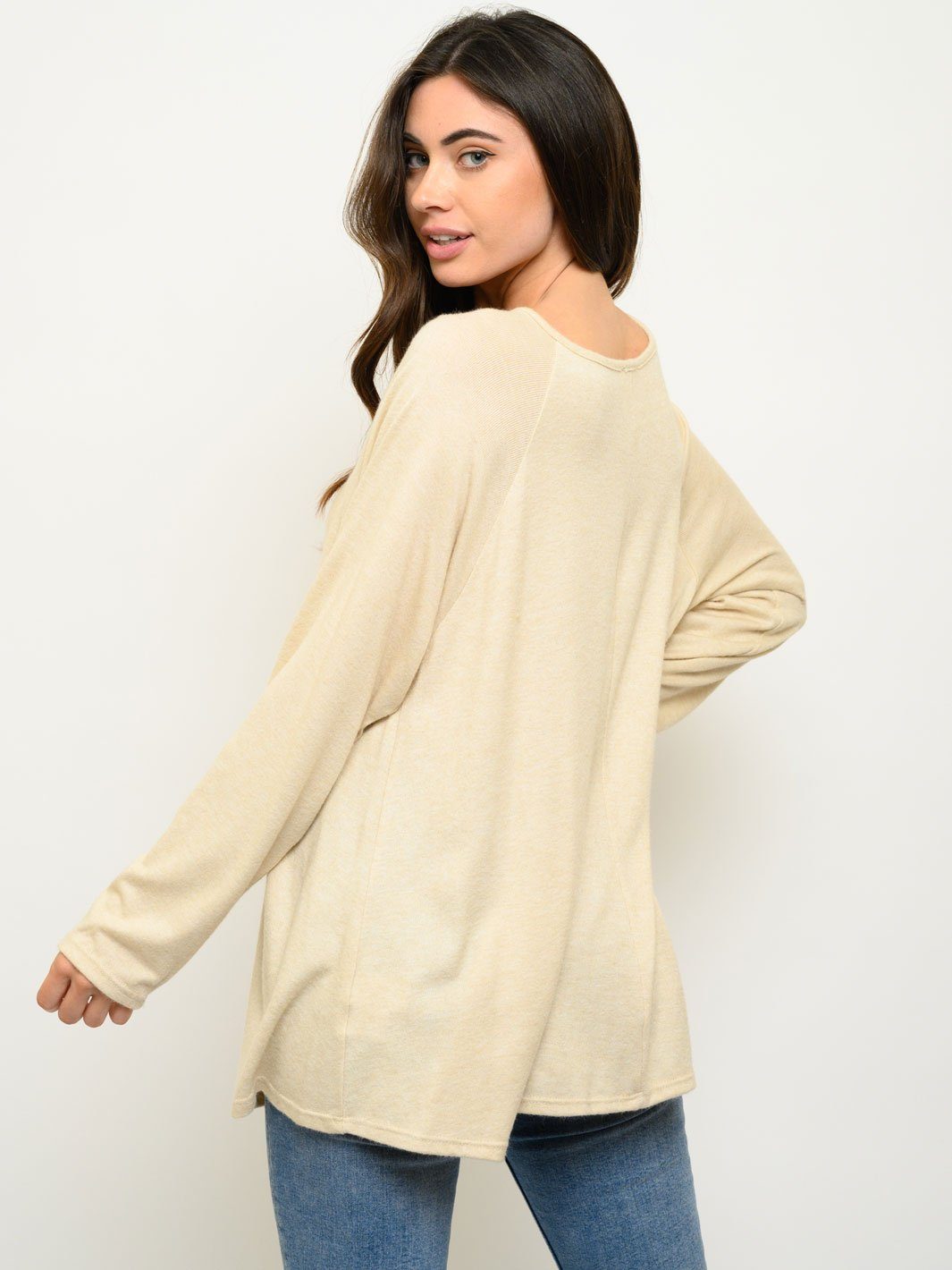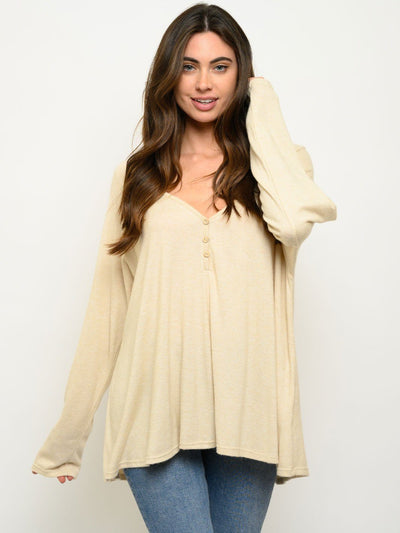WOMEN'S LONG SLEEVE V-NECK BUTTON UP TOP