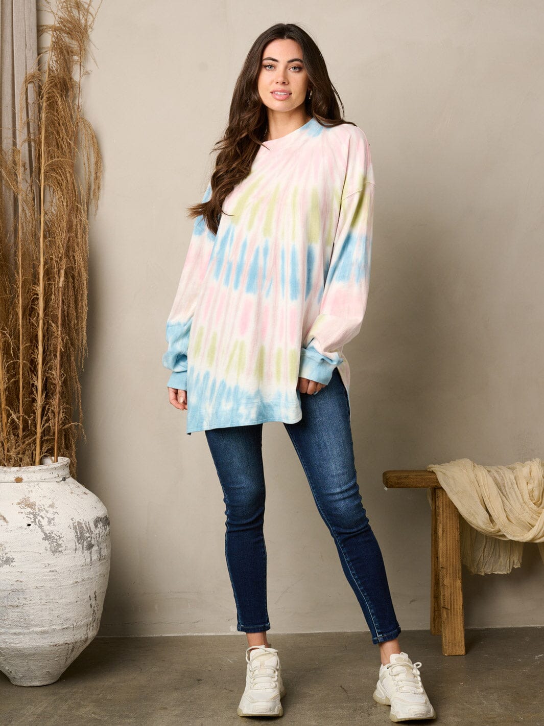 WOMEN'S LONG SLEEVE TIE DYE OVERSIZED TOP