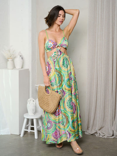 WOMEN'S SLEEVELESS FRONT KEYHOLE MULTI PRINT MAXI DRESS