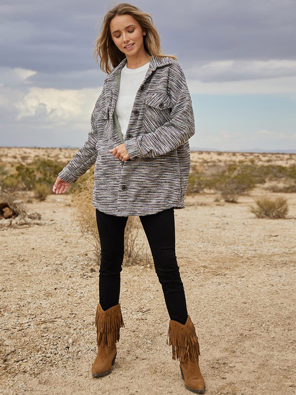 Complete the look:Our Women's Long Sleeve Pockets Button Up Tweed Jacket is a bestseller among boutiques for its high quality construction and timeless design. With a low wholesale price of only $11.75 per unit, retailers can markup this item for a significant profit. Its versatility and trend appeal make it a reliable staple for any boutique's inventory. Plus, its classic design and functional pockets make it the perfect piece for in-store or online displays. Don't miss out on adding this popular item to your collection.