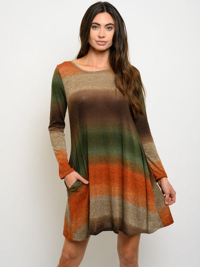 WOMEN'S LONG SLEEVE POCKETS TIE DYE DRESS