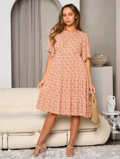 WOMEN'S SHORT SLEEVE TIERED FLORAL MIDI DRESS