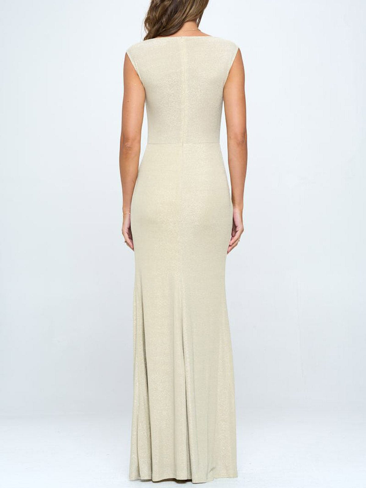 WOMEN'S SLEEVELESS V-NECK FRONT SLIT SHIMMER MAXI GOWN DRESS
