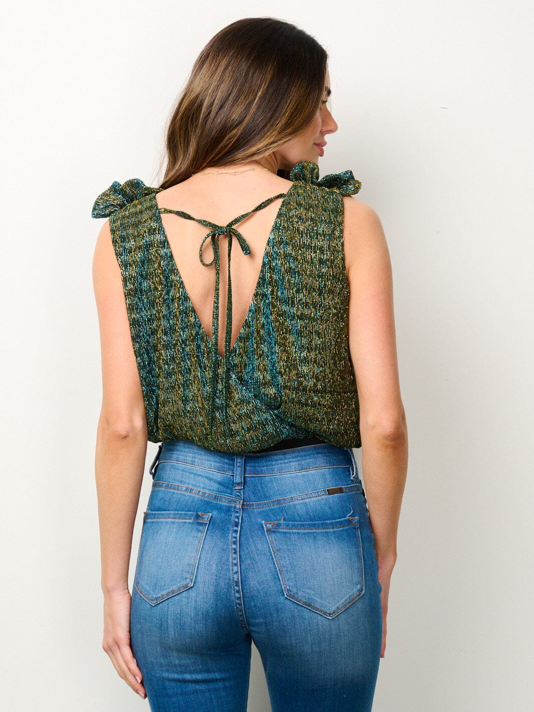 WOMEN'S SLEEVELESS SURPLICE SHIMMER BODYSUIT