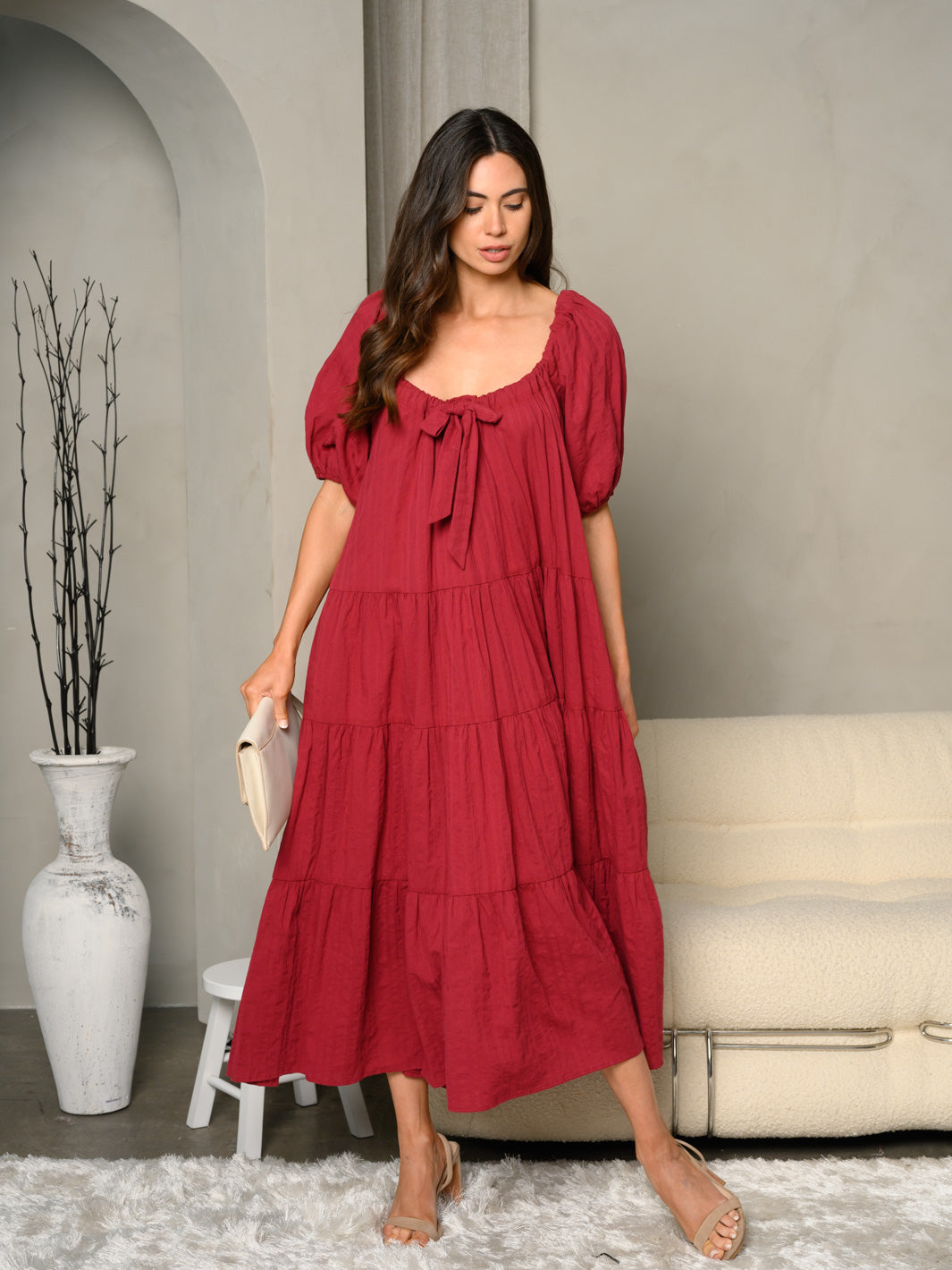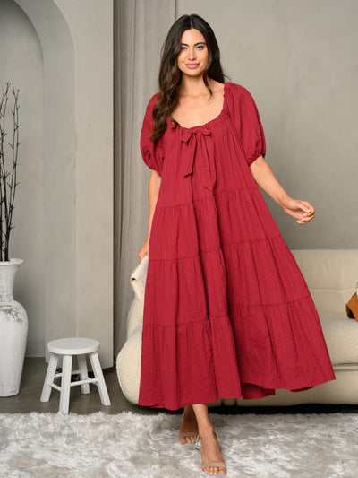 Discover the effortless elegance of our women's short-sleeve tunic dress, a versatile addition to any fashion collection. Crafted from 100% cotton, this maxi dress features a flattering front tie and a tiered silhouette, making it perfect for stylish daytime outings or casual evening gatherings. A bestseller with boutiques, this piece is ideal for layering and accessorizing in various styling scenarios.