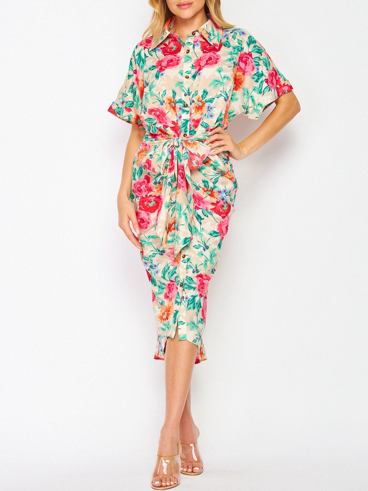 Complete the look:This women's floral button-up midi dress is a must-have for retailers who value high-turnover and effortless style. Its appealing design and attractive price point offer excellent markup potential, making it a smart choice for inventory. With its trend-forward appeal and reliable reorder option, this dress is a versatile and profitable addition to both in-store displays and online catalogs.
