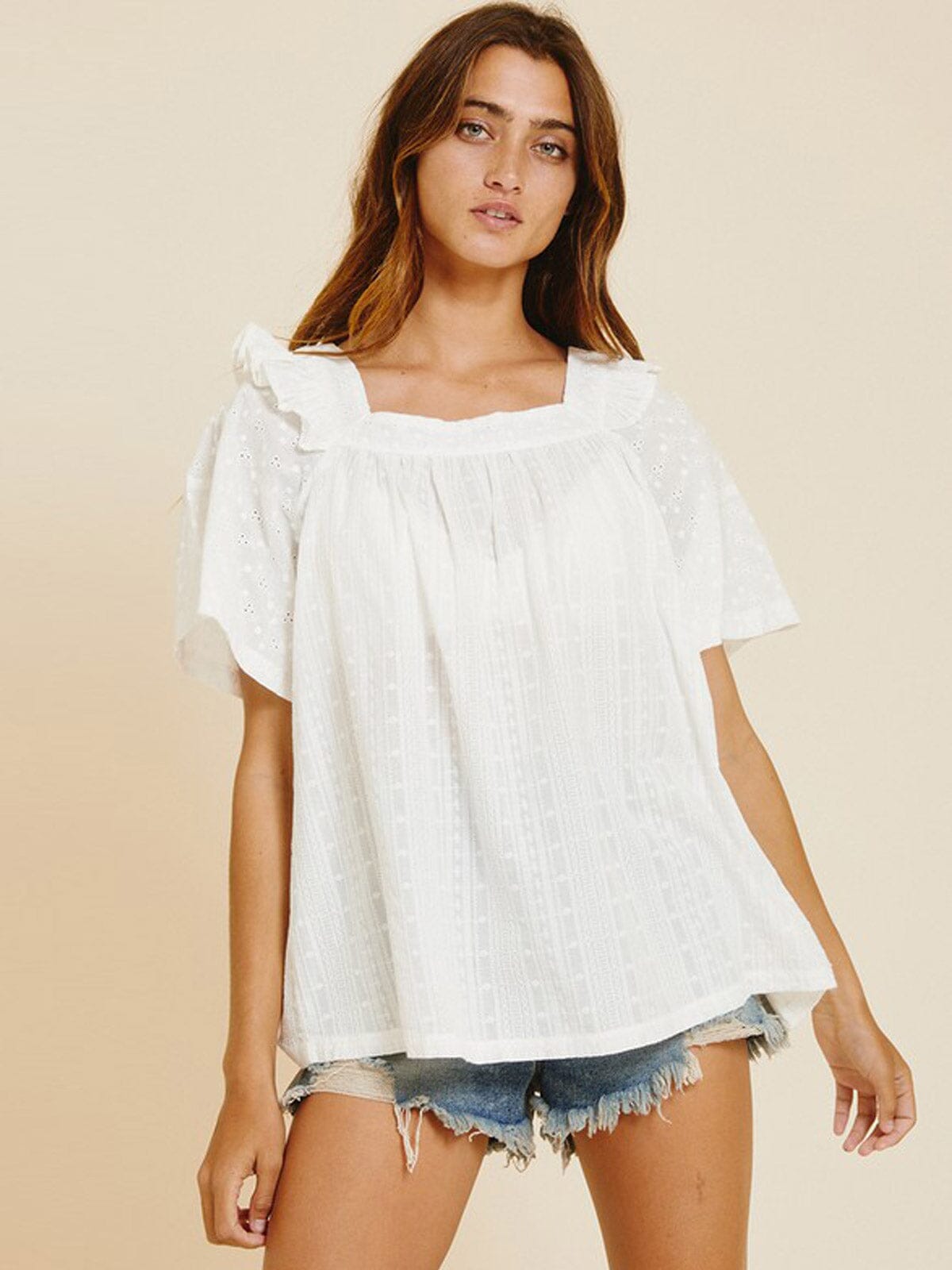 The Embroidered Floral Short Sleeve Top is a staple for retailers looking to enhance their collections with timeless pieces. Its appeal lies in the quality craftsmanship and versatile design, offering a high markup potential and reliable reordering. This top is a favorite for its ability to seamlessly transition from casual to dressy, making it a valuable addition to any boutique’s display, whether in-store or online.