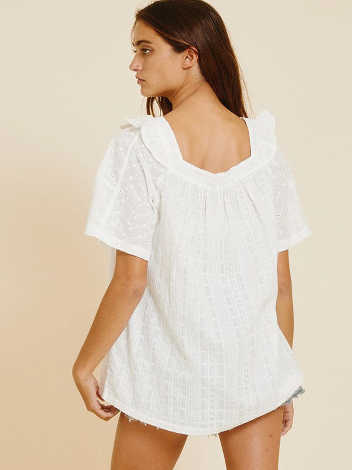 WOMEN'S SHORT SLEEVES EMBROIDRY FLORAL BLOUSE TOP