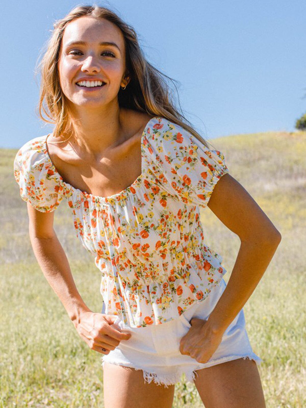 Complete the look:WOMEN'S SHORT SLEEVE FLORAL TOP is a top-performing item among retail buyers due to its versatile styling options and high-quality fabric. With a potential markup of 300%, this top is a reliable choice for boutique owners looking to maximize profits. The on-trend floral design and made in USA label make it a desirable piece for fashion-forward customers. Its light and flowy silhouette also makes it a great display item for in-store or online merchandising. Don't miss out on this must-have top for your boutique collection.