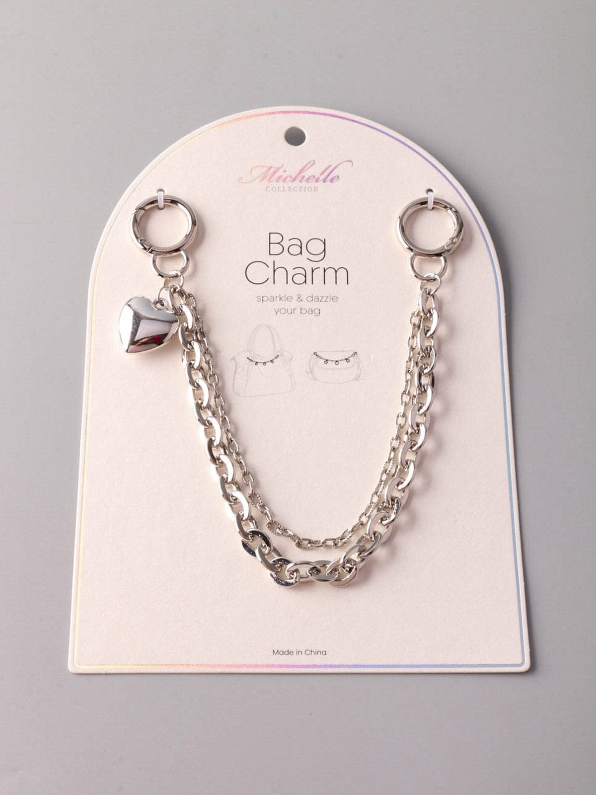 stylish heart pendant, durable silver chain, versatile accessory for bags, lightweight design, perfect for gifting, ideal for boutiques and resellers