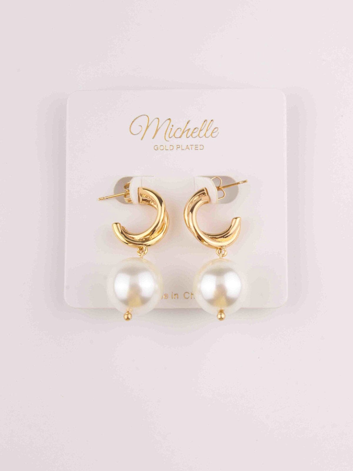 FASHION GOLD PLEATED DROP PEARL EARRINGS