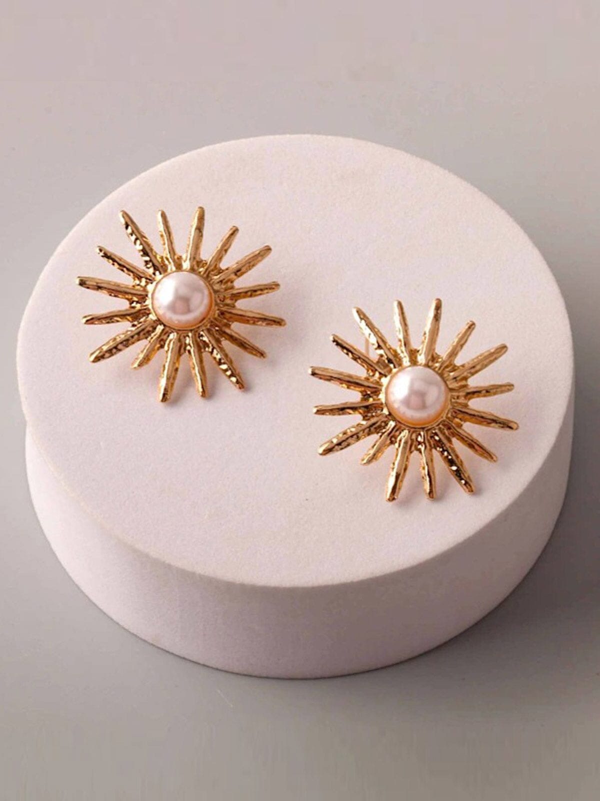FASHION GOLD & SILVER PEARL SUN EARRINGS