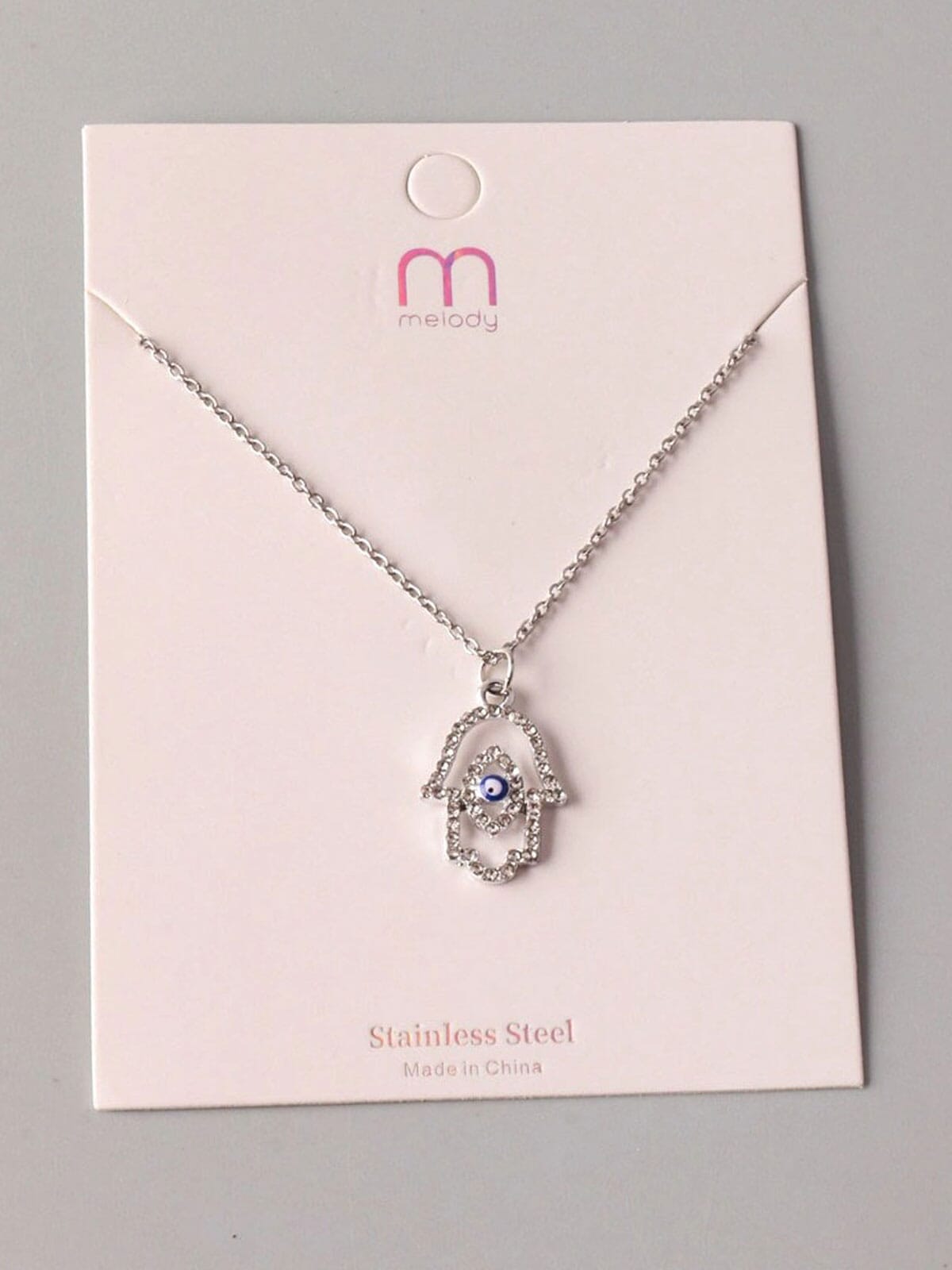 Durable silver plating, intricate Hamsa design, versatile styling options, perfect for layering, high boutique appeal.