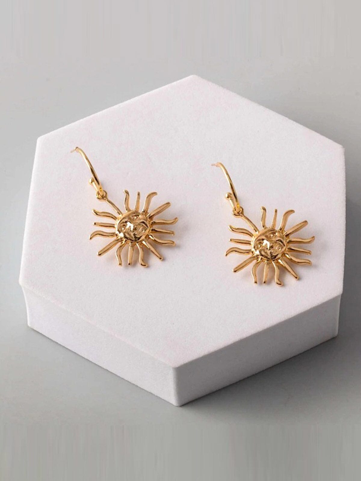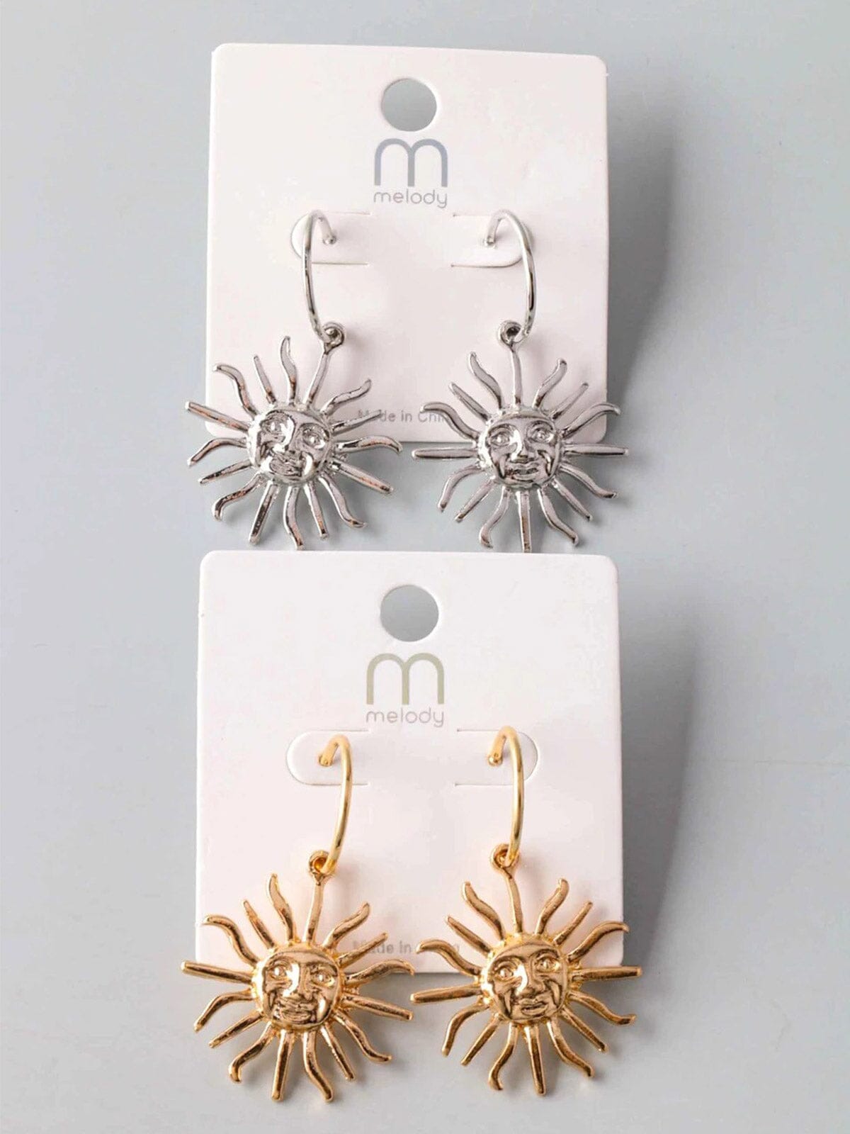 Elevate your accessory selection with these radiant gold and silver sunburst drop earrings, an eye-catching choice for any jewelry collection. Featuring a contemporary sun motif, each pair offers a sleek metallic finish and lightweight silhouette—perfect for day-to-night styling. Their versatile design makes them a standout bestseller with boutiques, ideal for curating trend-forward edits and gifting assortments. Style them with casual denim or dressier looks for maximum versatility in your retail displays.