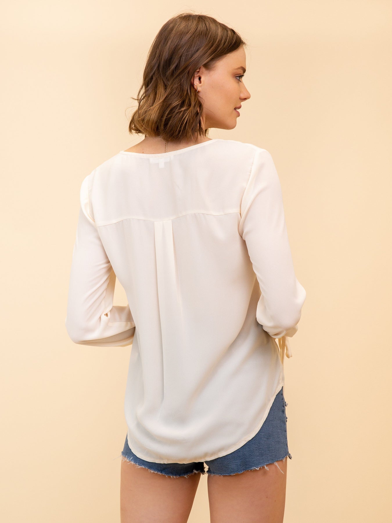 Introducing our elegant women's cream top—a versatile and timeless piece that is a bestseller with boutiques. Crafted from smooth polyester, this long-sleeve blouse features a classic button-up design, offering a chic silhouette perfect for professional and casual settings. Ideal for trend-forward layering, it seamlessly transitions from office to evening wear.