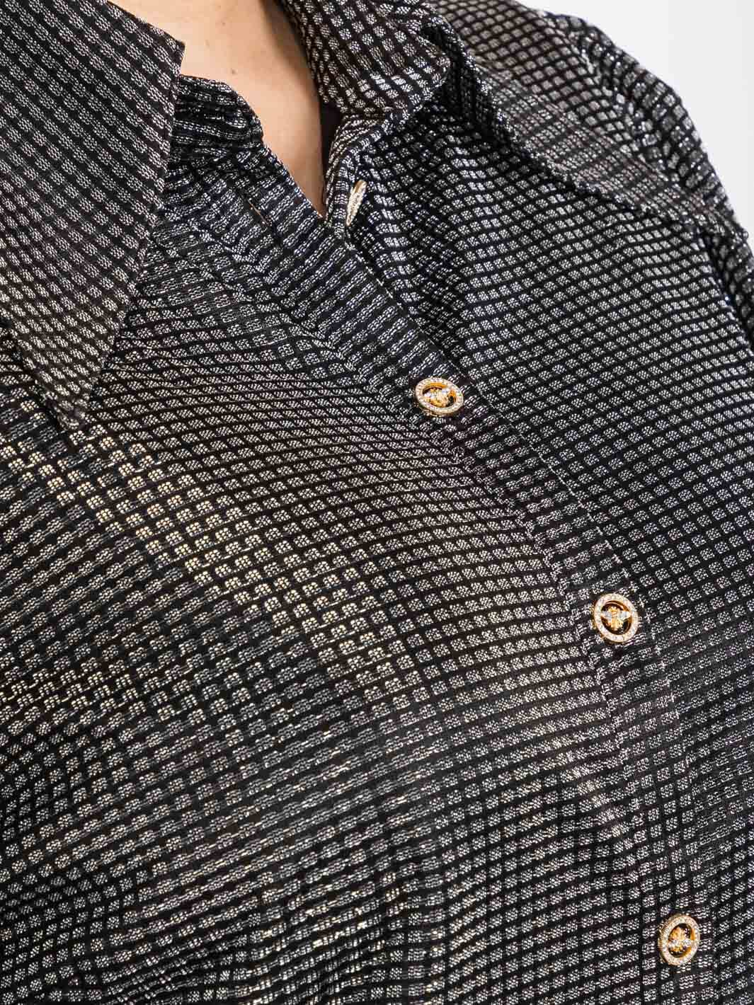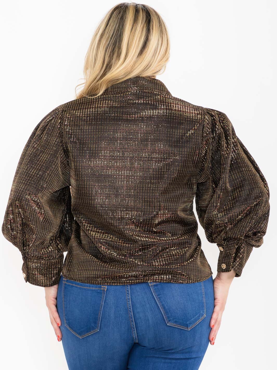 PLUS SIZE 3/4 PUFF SLEEVE BUTTON UP SHIMMER BLOUSE