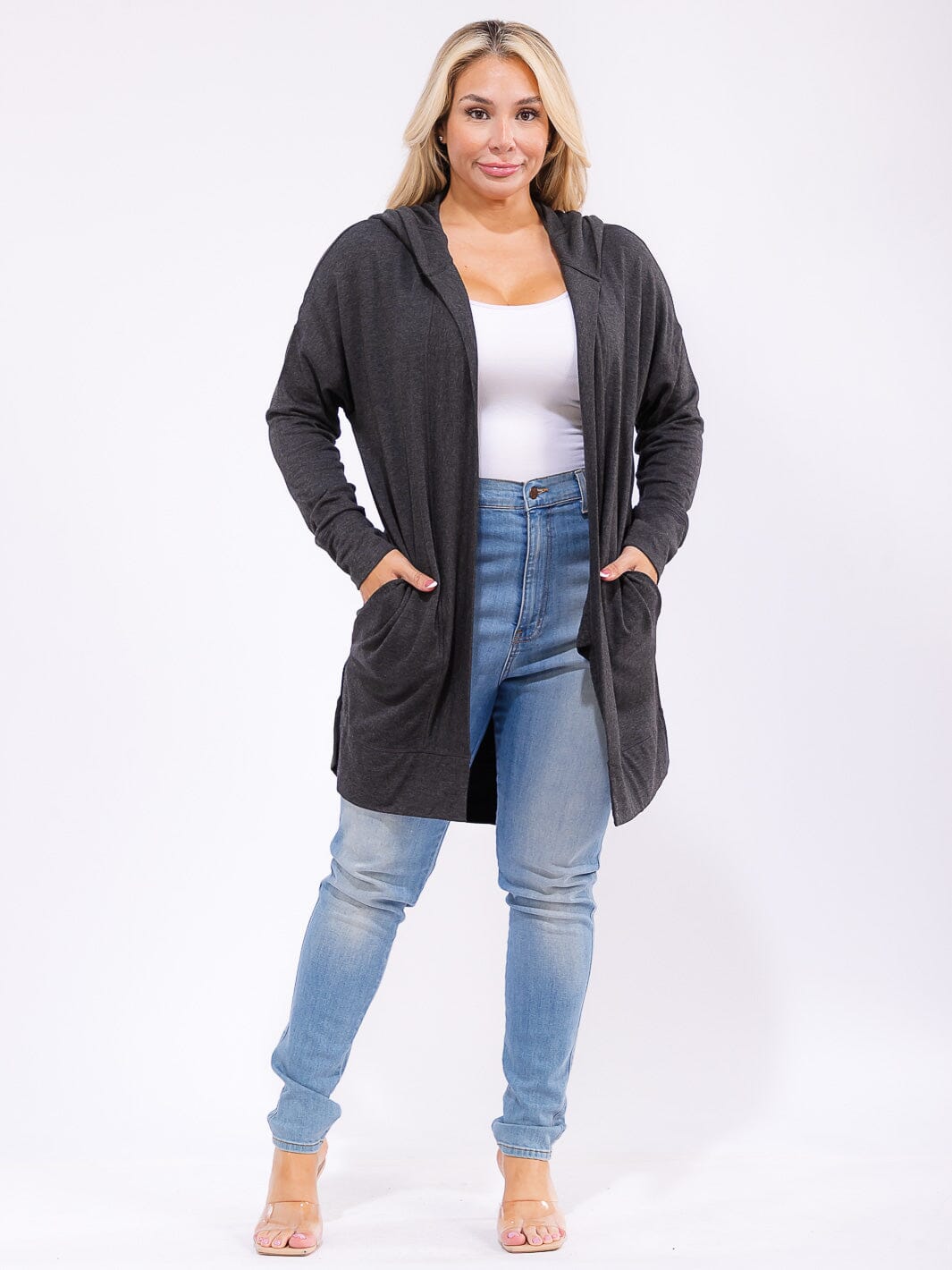 Introducing our Plus Size Hooded Cardigan with Open Front and Pockets, a versatile staple for stylish layering. Crafted from a comfortable rayon-spandex blend, this lightweight cardigan drapes elegantly, making it perfect for casual days or chic evening outings. Boutique owners will love its adaptable design, ideal for pairing with everything from jeans to dresses, ensuring a trend-forward addition to any collection.