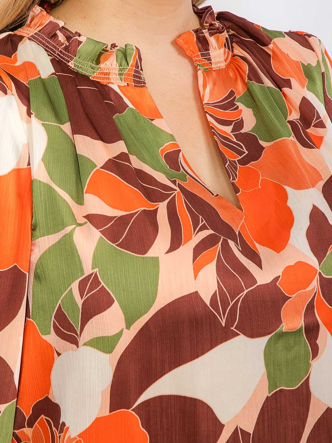 Elevate your plus-size collection with this stunning long sleeve ruffle V-neck floral blouse. Designed with a flattering cut and delicate ruffles, this blouse is perfect for any occasion. Whether you're heading to brunch, a resort, or on vacation, this versatile piece will elevate your style while keeping you comfortable with its breathable fabric.