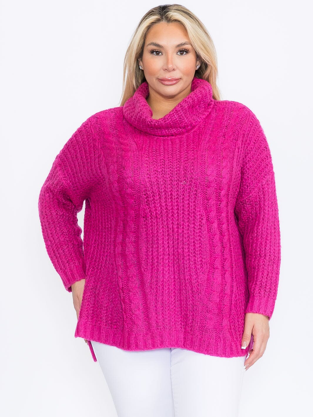 Features:Soft knit fabric, flattering plus-size fit, versatile turtleneck design, ideal for layering, fall and winter essential, boutique favorite.