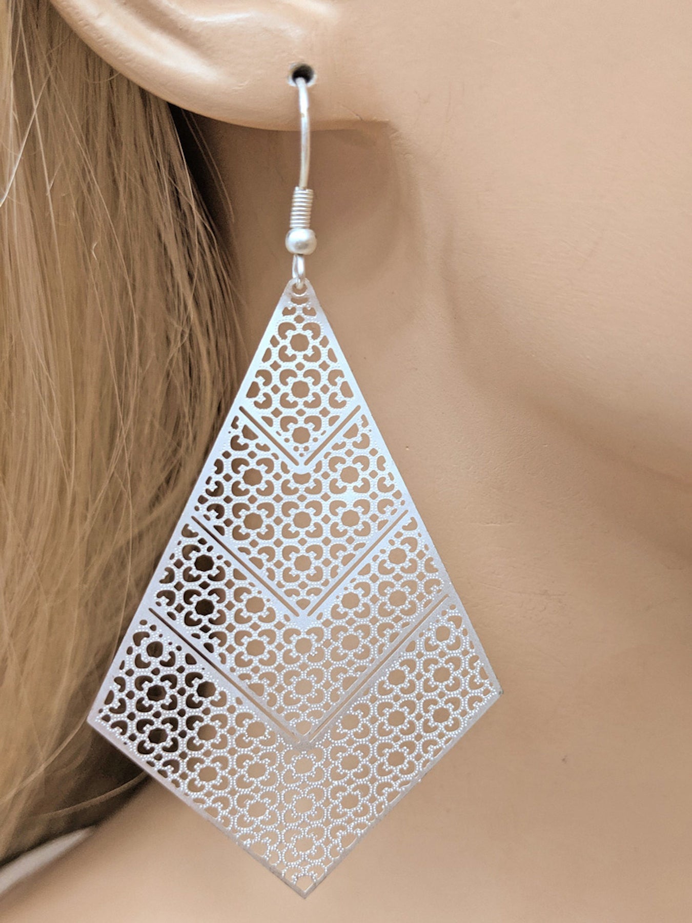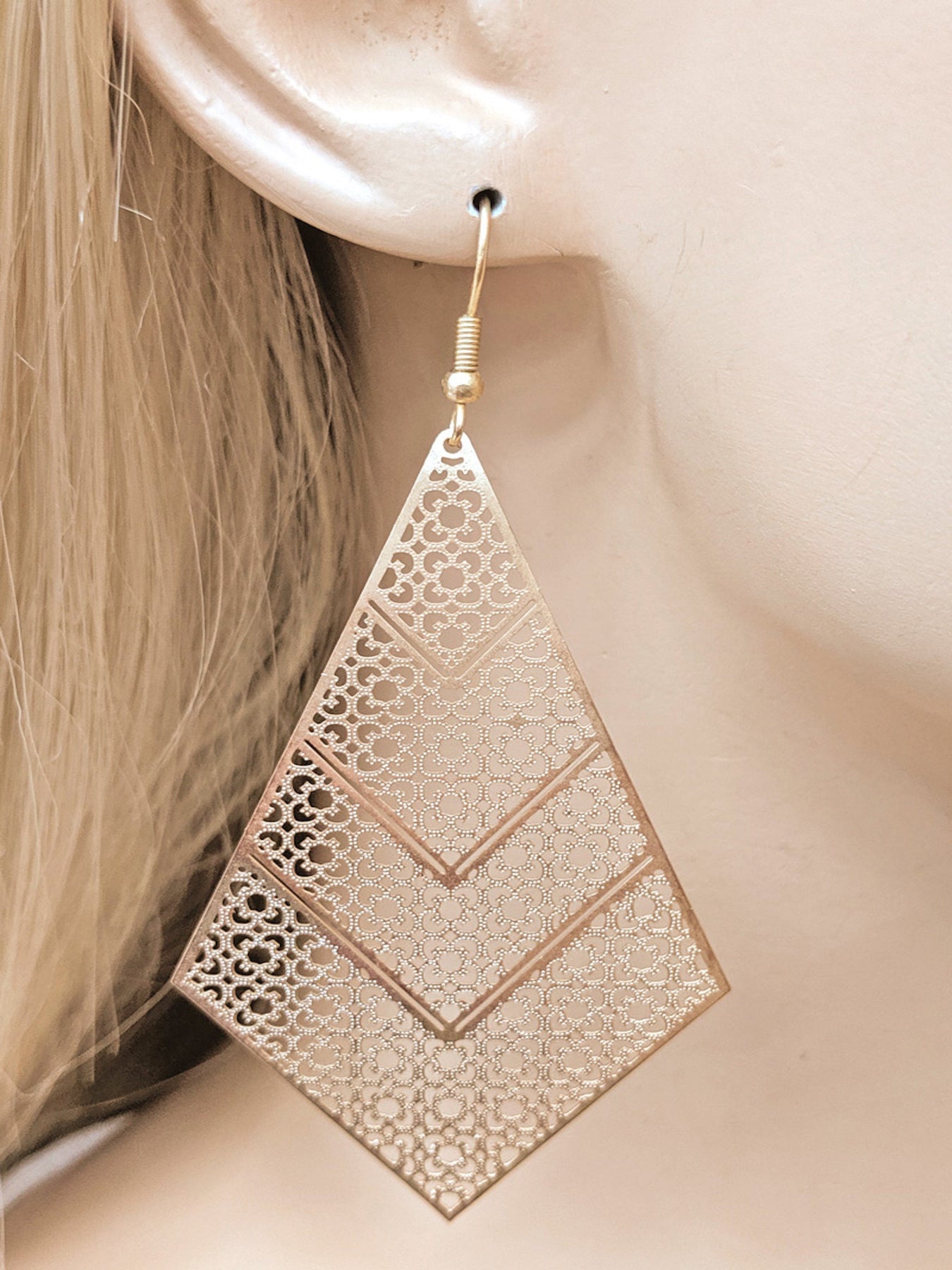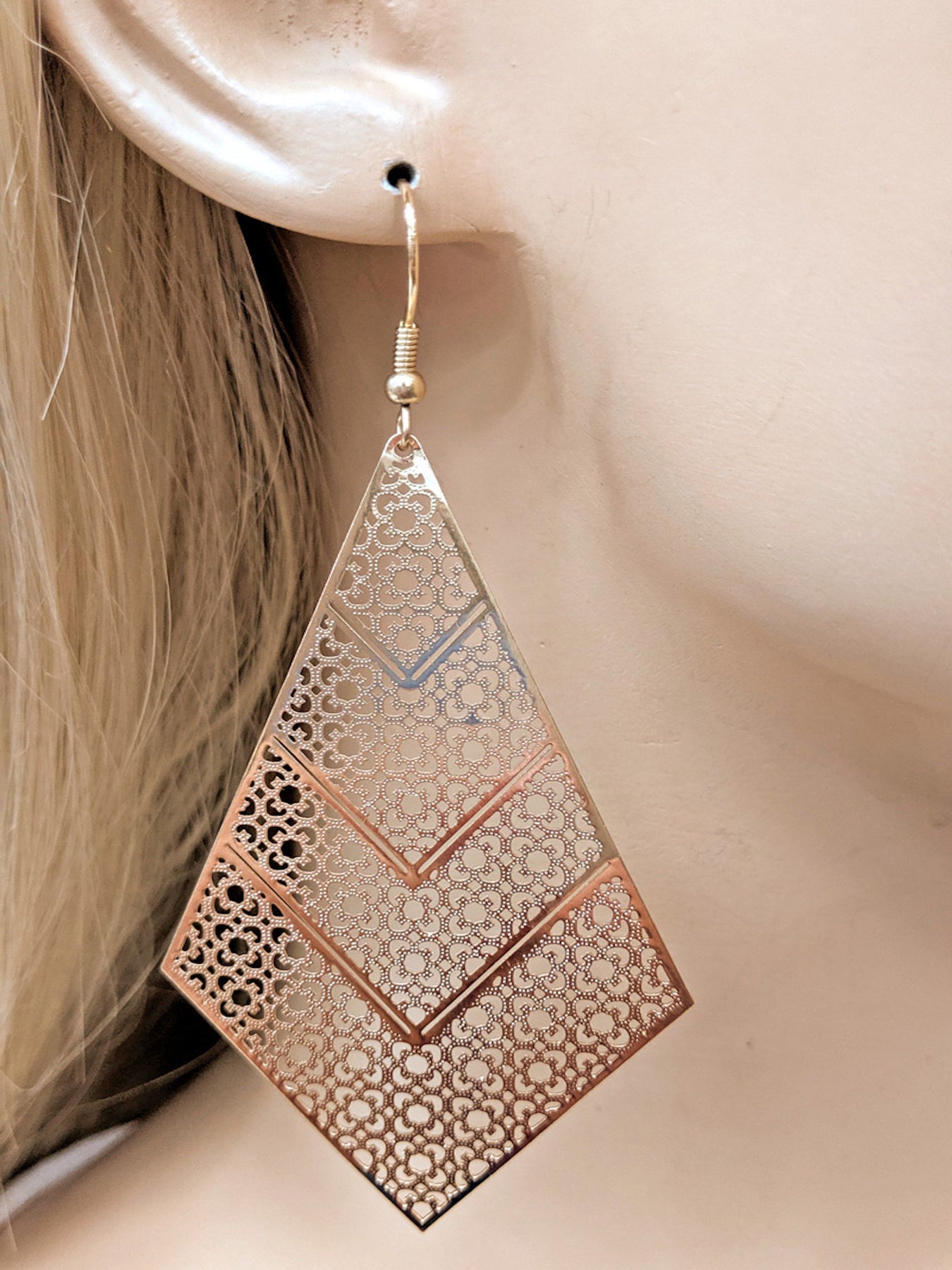 Elevate your accessory lineup with these geometric dangle earrings, a perfect blend of modern elegance and versatility. Their sleek, triangular silhouette makes them a standout piece for any jewelry collection, offering a chic, contemporary touch ideal for both casual and formal looks. These earrings are a must-have for retailers seeking to add a trend-forward accessory to their offerings that appeals to fashion-conscious clientele.