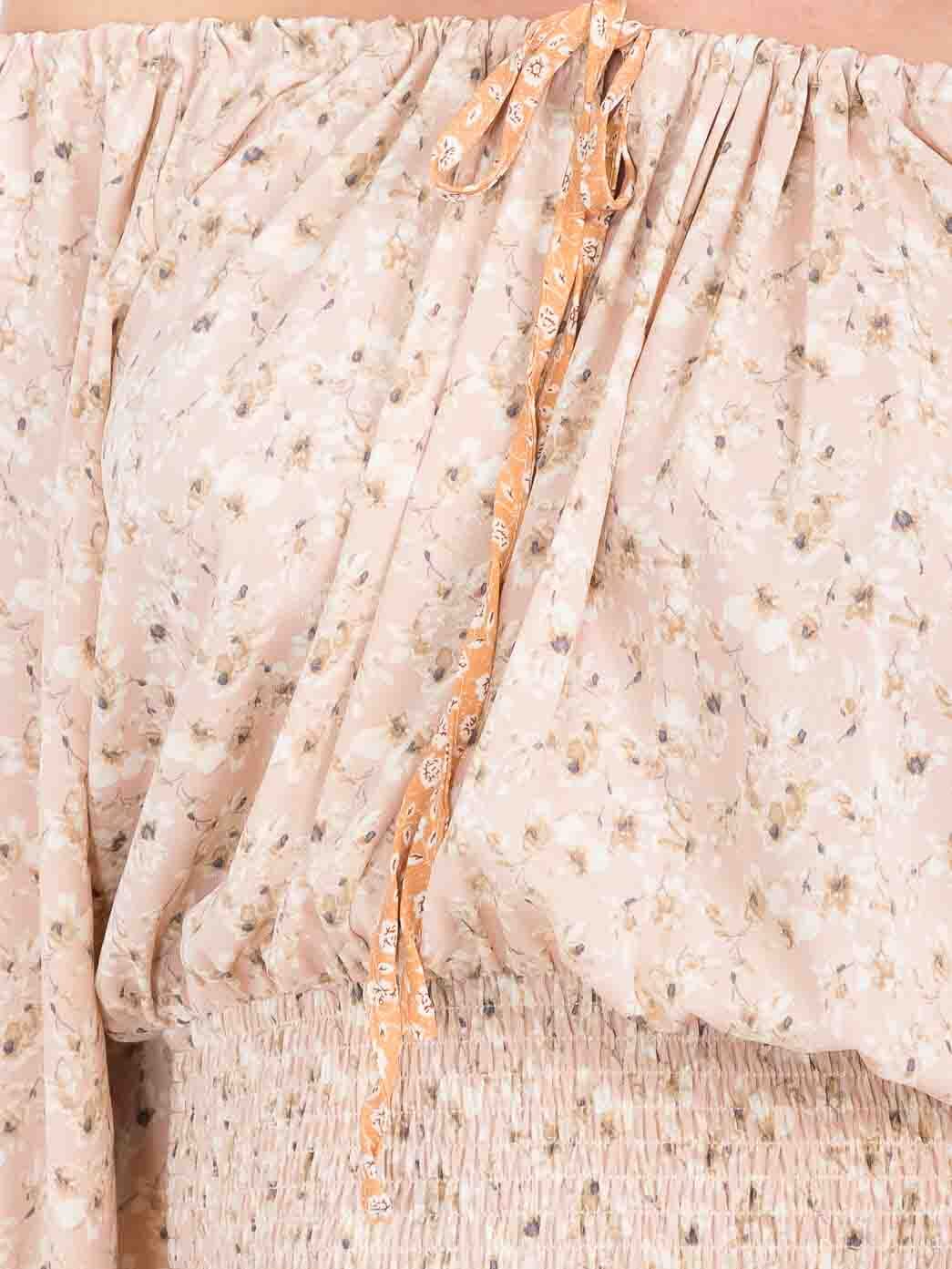 Features:Lightweight polyester fabric, off-shoulder neckline, tiered mini silhouette, ideal for layering, comfortable smock waist, vibrant floral print, perfect for spring and summer collections.