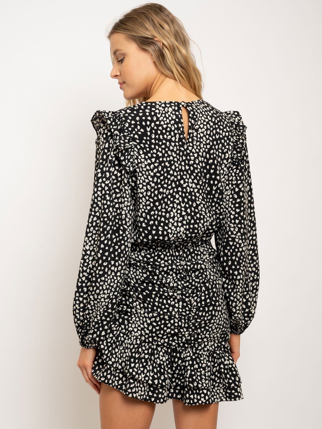 WOMEN'S ASYMMETRICAL RUCHED V-NECK LONG SLEEVE DRESS