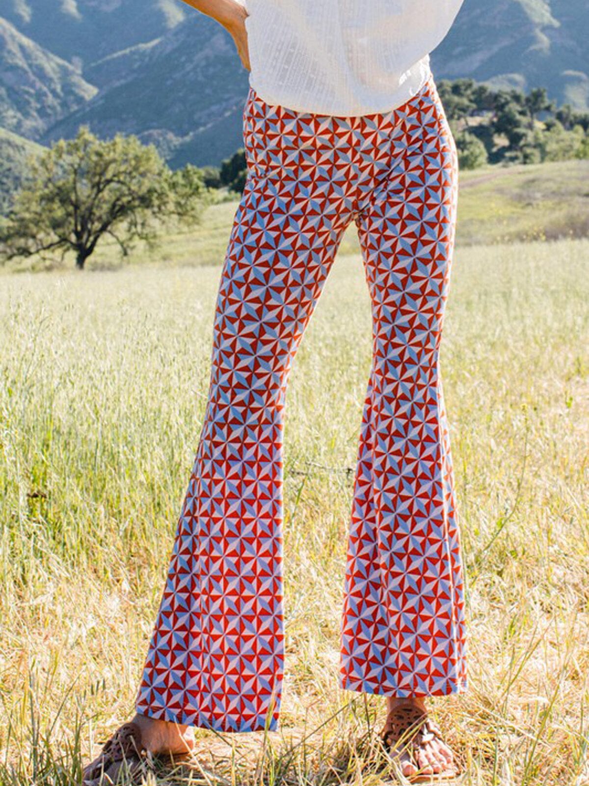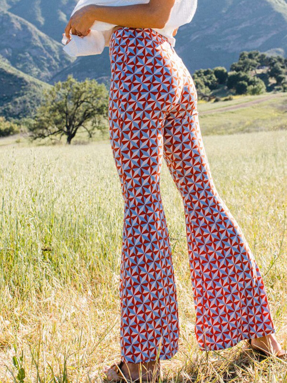 These vibrant women's flared pants are a colorful addition to any boutique's collection. With a flattering bell-bottom silhouette, crafted from a soft polyester-spandex blend, these pants offer both style and comfort. Perfect for casual outings or festival wear, they are a trend-forward piece that will delight fashion-savvy customers and are a must-have for retailers aiming to capture the retro trend.