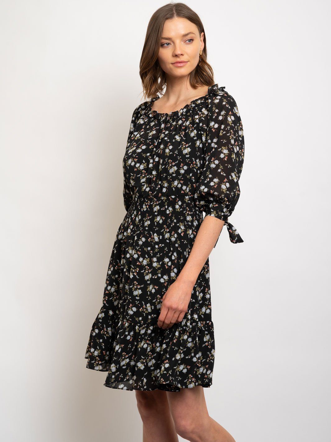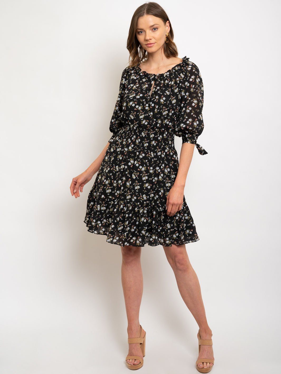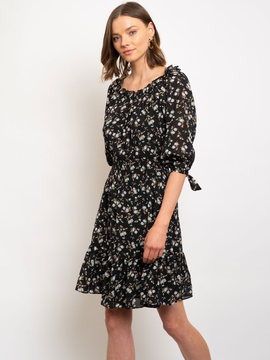 Complete the look:The Black Ditsy Yoru Chiffon Peasant Dress is a top-selling item among fashion retailers due to its versatile styling options and high markup potential. This dress is also a reliable reorder as it appeals to a wide range of customers with its on-trend design and comfortable fit. As a lightweight and effortless piece, it is perfect for both in-store and online displays. Don't miss out on the opportunity to add this popular dress to your inventory and increase your boutique's sales.