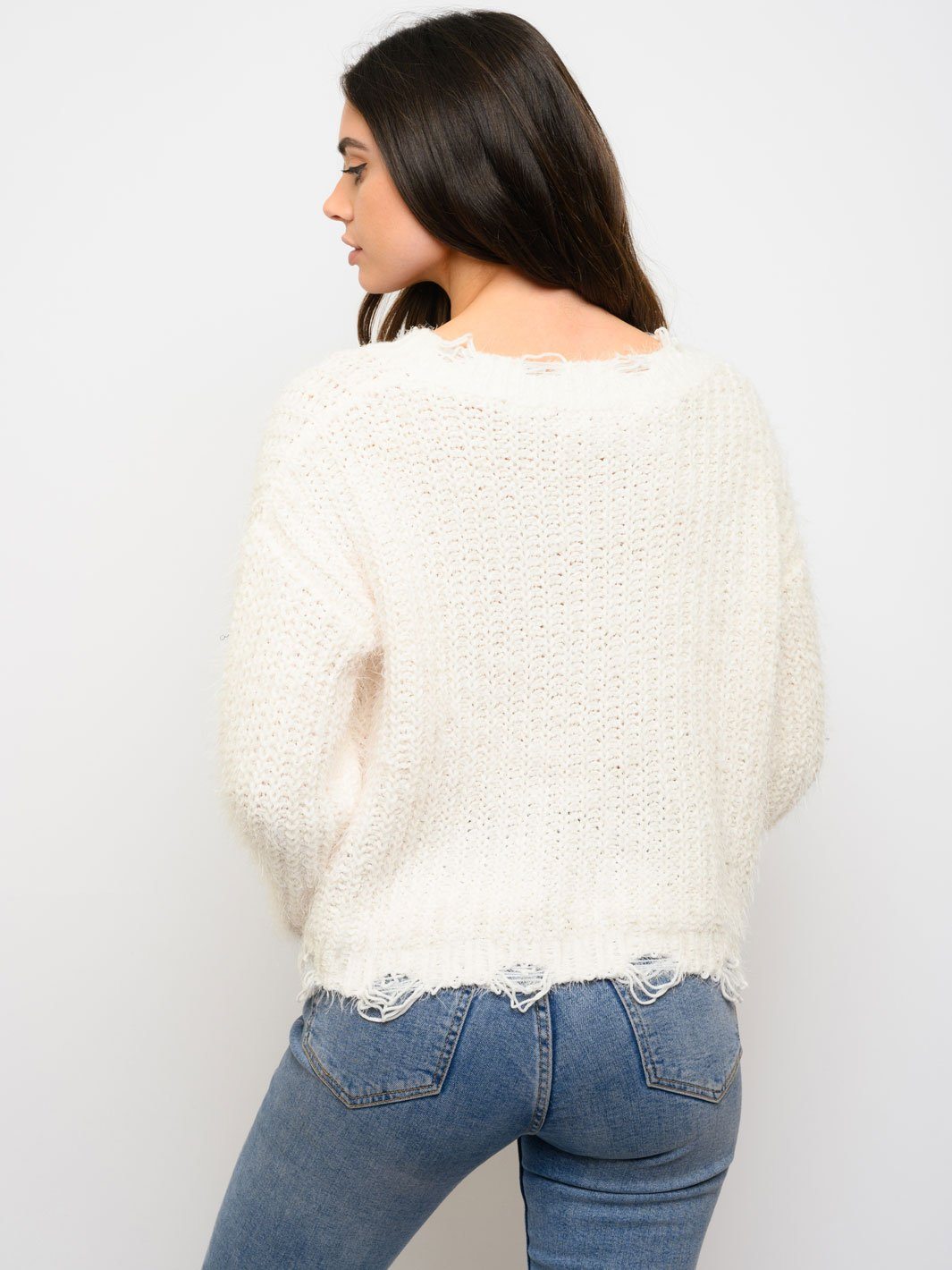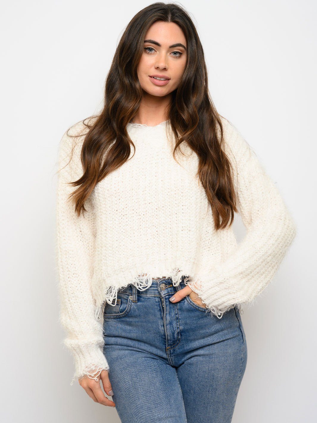 Complete the look:The distressed edge sweater stands out in any collection due to its trend-forward design and versatility. Boutique buyers appreciate its attractive markup potential and easy reorder process, making it a staple for fast-moving inventory. Its unique style captures attention both in-store and online, ensuring it remains a bestseller with fashion-forward retailers looking to attract a diverse clientele.