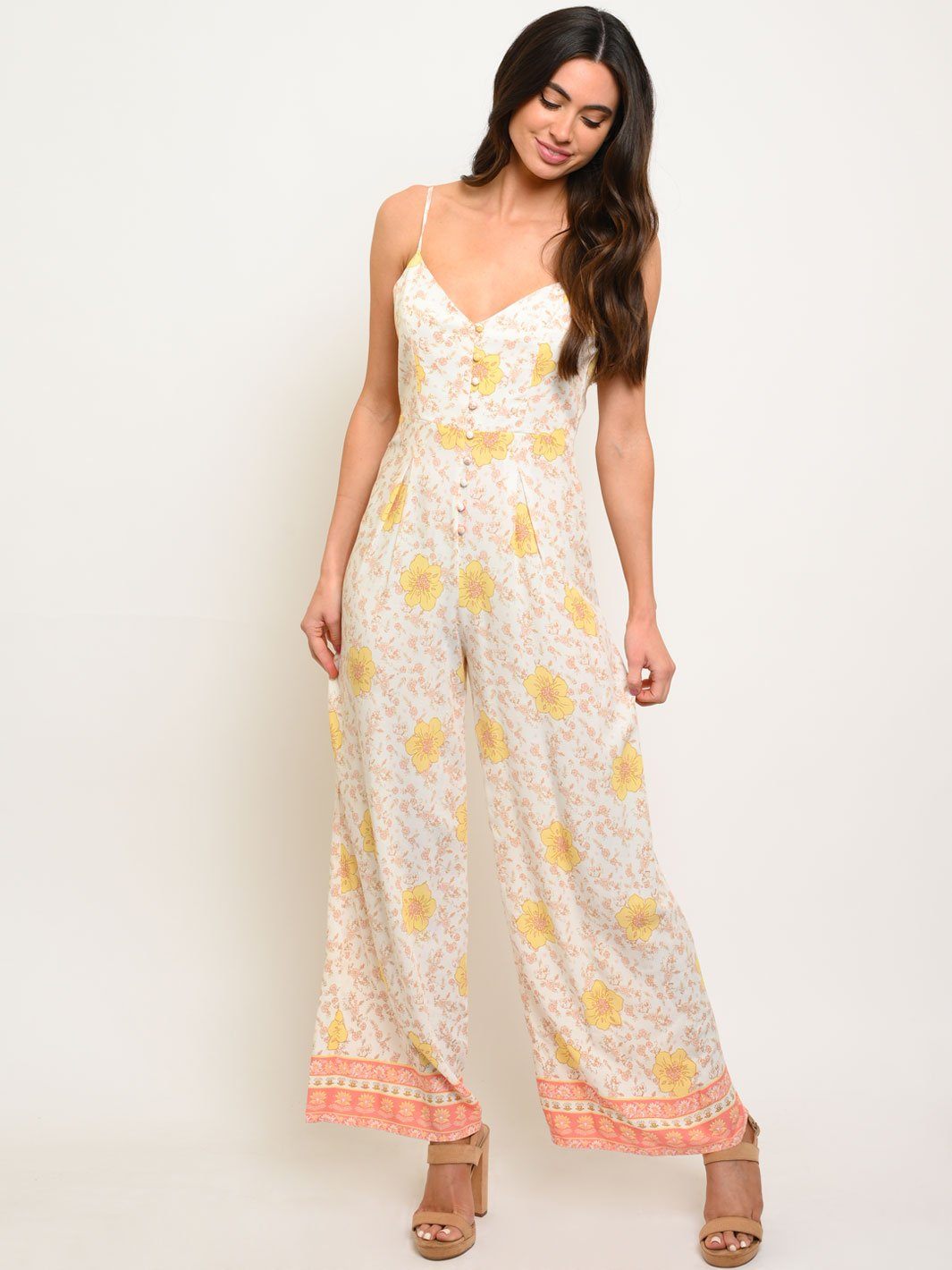 Complete the look:The WOMEN'S FLORAL BUTTONS DETAIL JUMPSUIT is a customer favorite because of its versatility and trend appeal. With a markup potential and reorder reliability, this jumpsuit is a popular choice for boutiques. Its beautiful floral details and flattering silhouette make it a great display piece, whether in-store or online. Stock up on this must-have item to meet the demand of your fashion-forward customers.