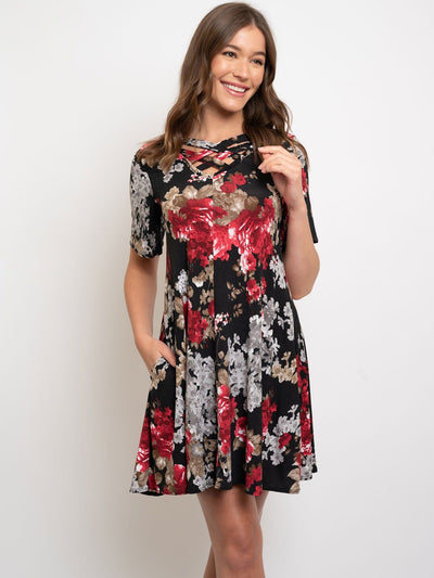 WOMEN'S FLORAL FRONT CROSS DRESS