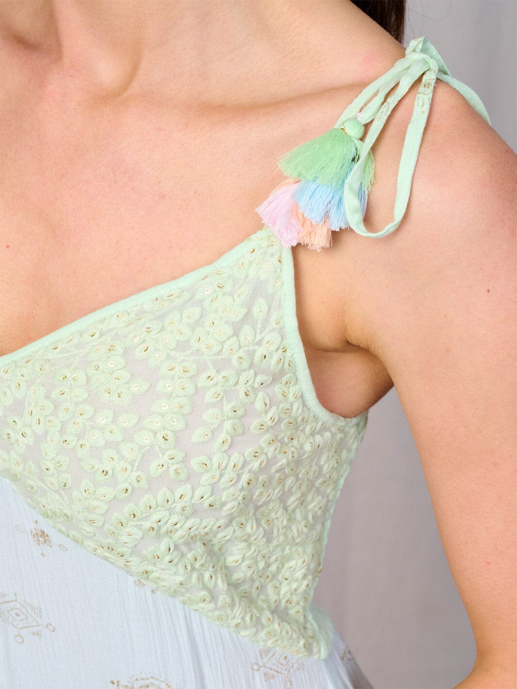 V-neck design, Sleeveless silhouette, Tiered print, Colorblock design, Made from 100% viscose for breathability and comfort