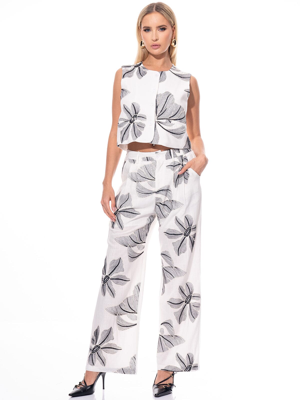 WOMEN'S SHORT SLEEVE BLOUSE & BUTTON CLOSURE PANTS LEAF PRINT 2PC. SET