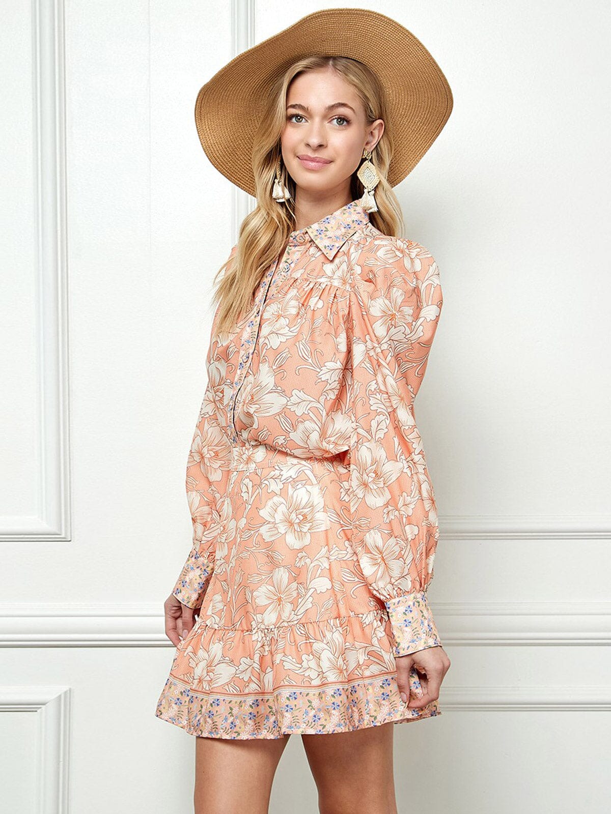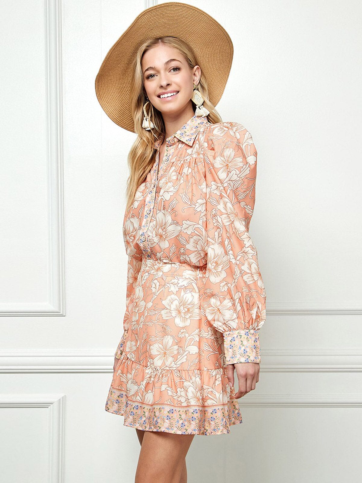 WOMEN'S LONG SLEEVE BUTTON UP TOP & MINI SKIRT FLORAL 2PC.SET