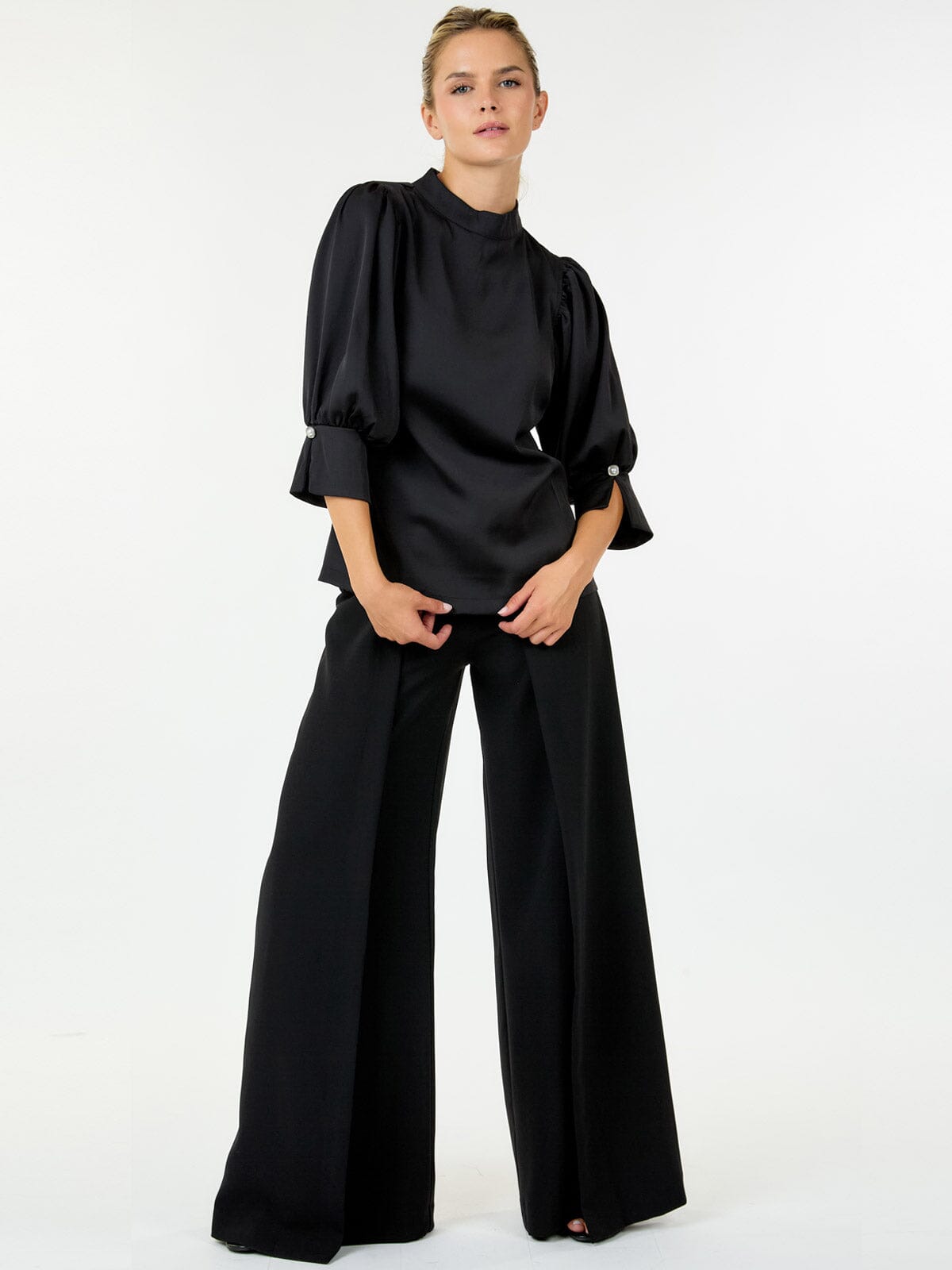 This elegant 3/4 sleeve blouse with a chic mock neck is crafted for the modern woman. Made from smooth polyester, it features a flattering silhouette that's perfect for layering or standalone wear. Ideal for both professional settings and casual outings, this piece is a favorite among trend-focused boutiques and a must-have for retailers looking to expand their lineup.