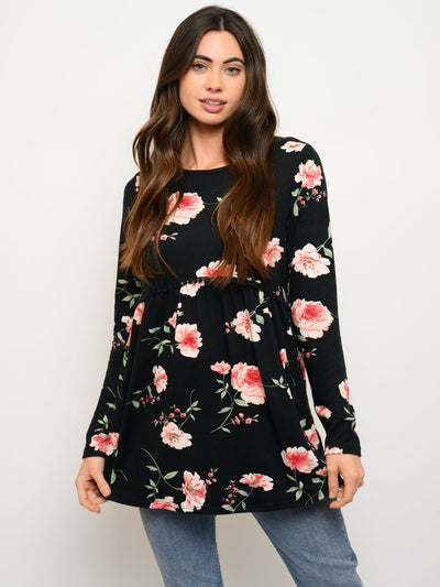 Discover the charm of our women's long-sleeve floral top, a delightful piece with a babydoll silhouette that offers a flowing and feminine look. Crafted from a soft blend of polyester and spandex, this top features a delicate floral pattern that makes it an excellent choice for casual outings or as a trend-forward layering piece for the fall season. A must-have for retailers, it pairs effortlessly with denim or skirts, making it a versatile addition to any boutique collection.