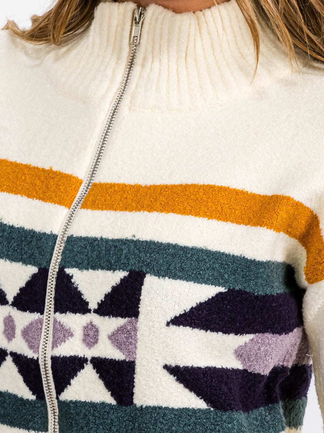 Introducing our Women's Zip Up Multi Print Sweater Cardigan - the perfect trend-forward layering piece for any boutique owner or fashion reseller. Made with 95% cotton and 5% spandex, this cardigan offers both comfort and style. The zip-up feature and multi-print design makes it versatile enough to wear with any outfit, making it a must-have for retailers.
