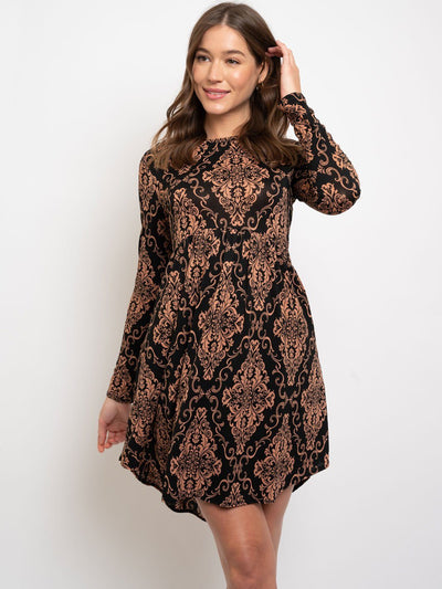This women's patterned long-sleeve dress is a favorite among boutique owners, offering an excellent markup potential and reliable reorder availability. Its trend appeal and versatile styling make it a standout piece in any collection. Perfect for in-store displays or online merchandising, this dress is a savvy choice for fashion-forward retailers seeking to capture customer interest.