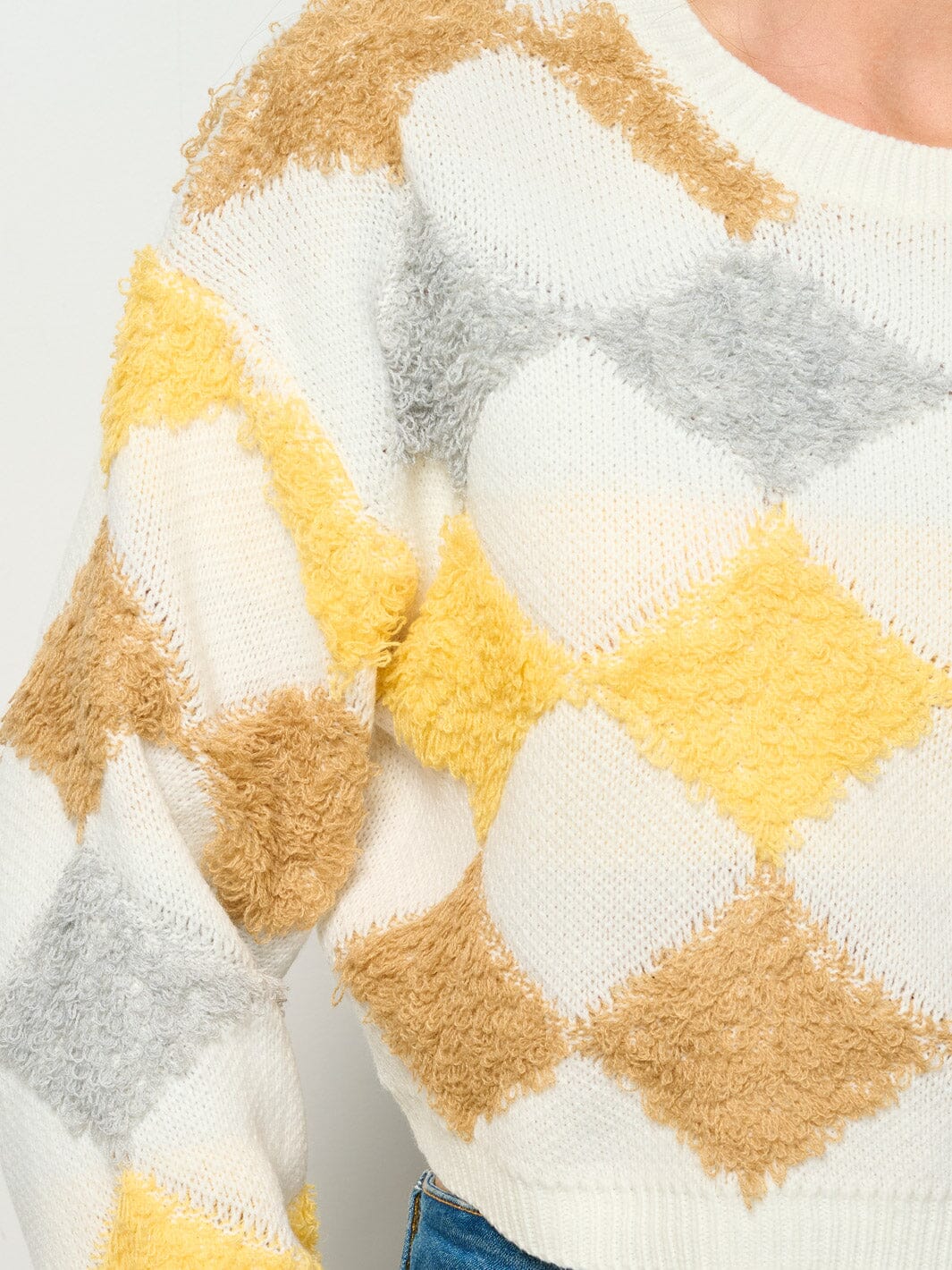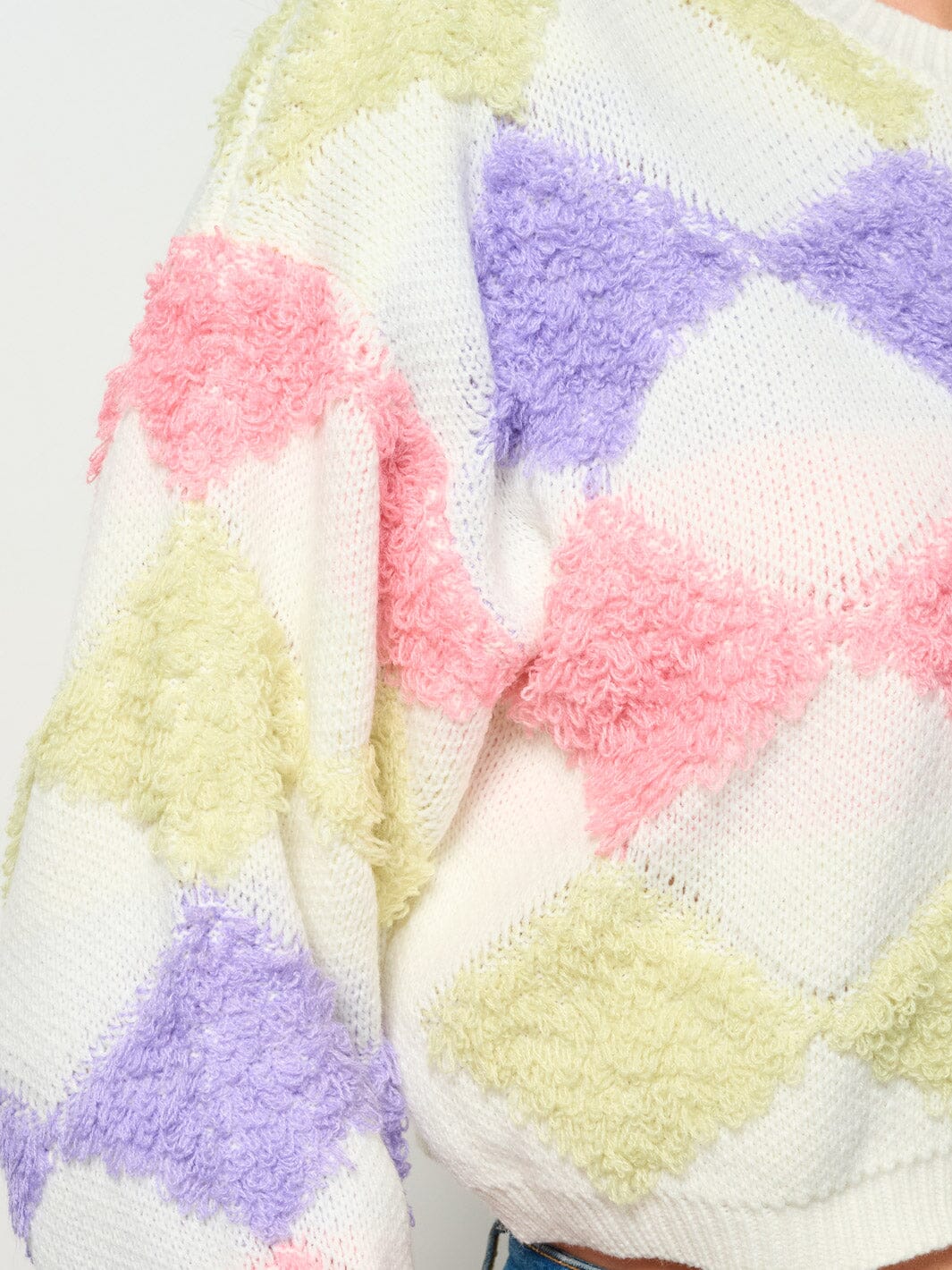 Complete the look:The colorful cropped pullover sweater is a retail favorite thanks to its eye-catching design and adaptable style. Boutiques love this piece for its high markup potential and trend-forward appeal, ensuring that it continually captivates customers. Reliable pack sales and the ability to effortlessly showcase it in-store or online make it a wholesale must-have.
