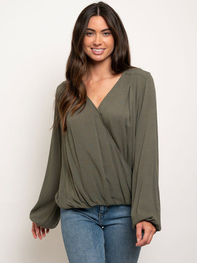 WOMEN'S LONG SLEEVE SURPLICE TOP
