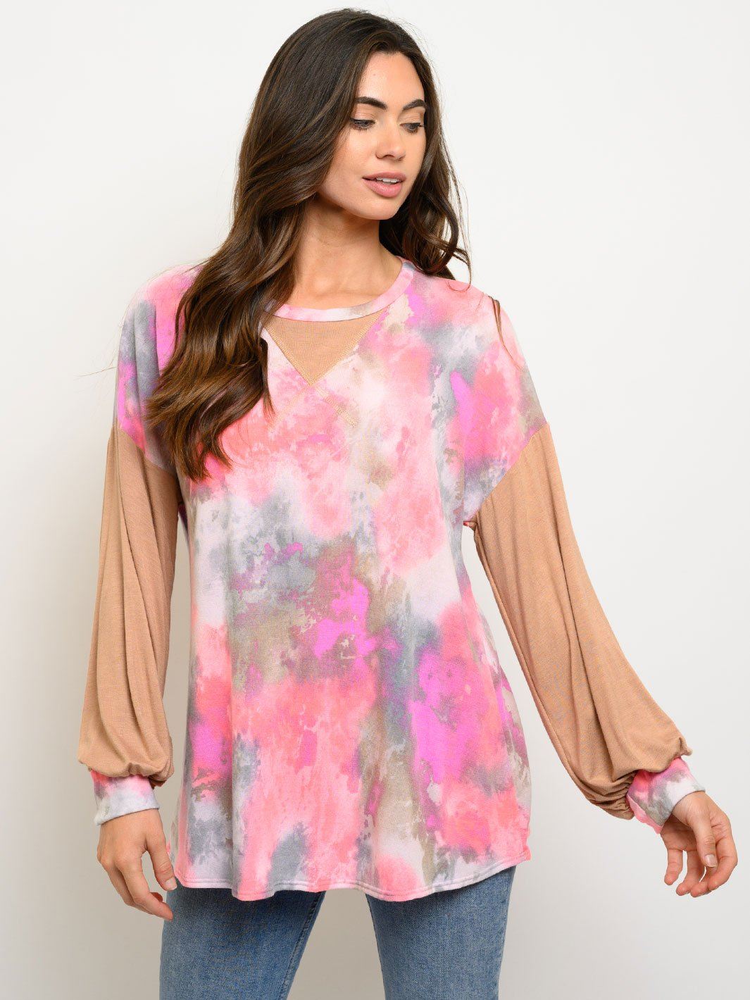 WOMEN'S LONG SLEEVE TUNIC TIE DYE TOP