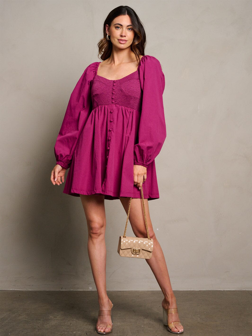 Complete the look:Our long sleeve buttoned mini dress is a favorite among boutique buyers due to its exceptional markup potential and consistent reorder demand. Its classic yet trendy appeal ensures it stands out in any display, making it a reliable choice for both in-store and online merchandising. This piece combines commercial viability with high fashion, offering retailers a must-have item that attracts style-conscious shoppers.