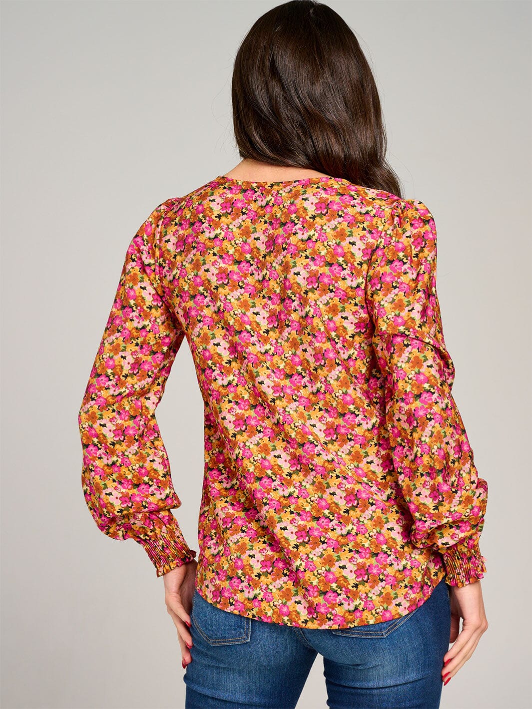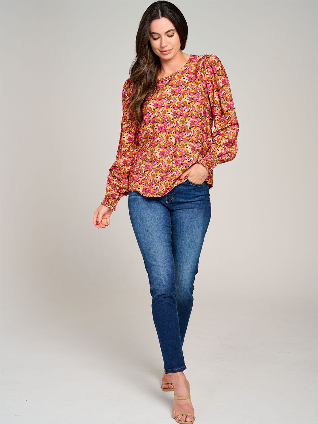 Features:Floral pattern, long sleeves, flattering silhouette, versatile styling options, perfect for any season, comfortable fabric, and high appeal for boutique buyers.