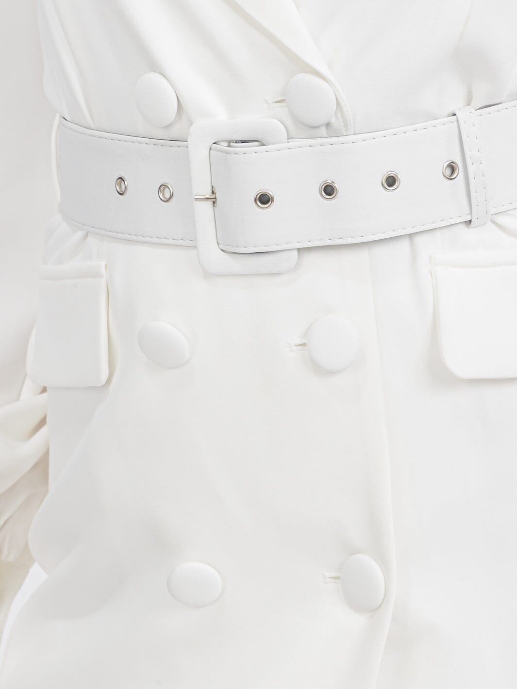 Features:95% Polyester 5% Elastane fabric, Long sleeves, Button-up front, Belted waist, Figure-flattering silhouette, Versatile styling options, Ideal for all seasons.