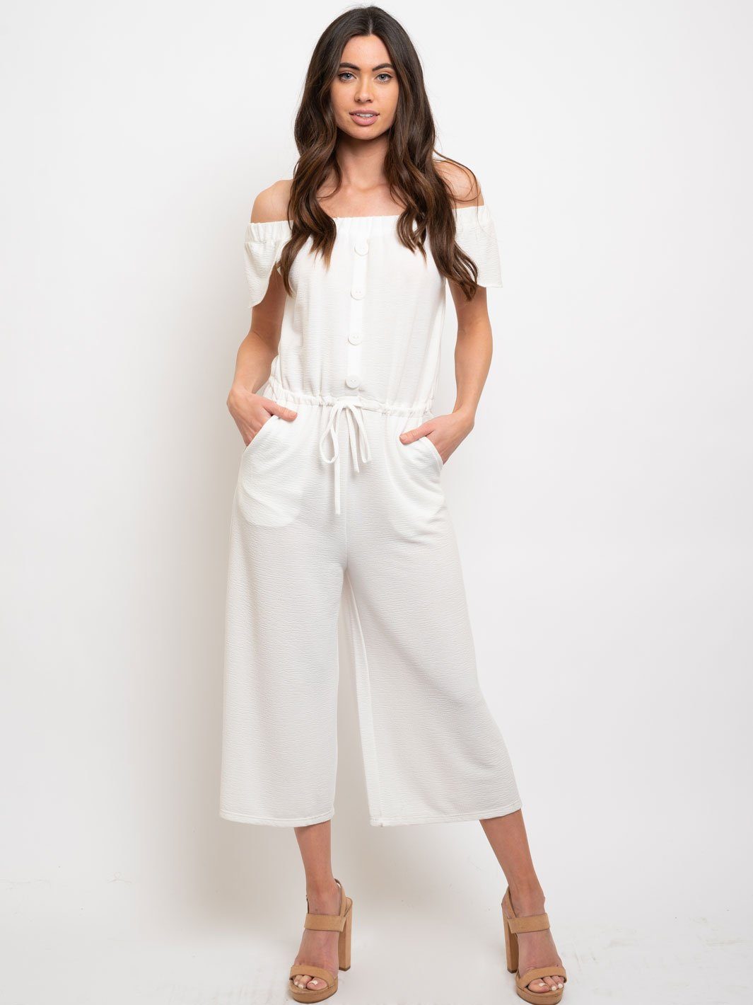 Complete the look:Our WOMEN'S OFF SHOULDER RUFFLE SLEEVE JUMPSUIT is a top-seller with boutiques for good reason. Its flattering silhouette and trendy ruffle sleeves make it a go-to choice for fashion-conscious customers. With a low cost per unit of just $8.75 and the ability to be sold in packs, this jumpsuit offers a high markup potential for retailers. Its versatile design and comfort make it a reliable choice for reorders, while its visual appeal makes it a great option for in-store or online display. Don't miss out on this must-have piece for your boutique!