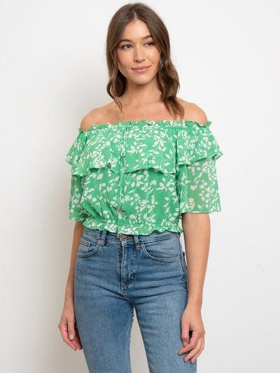 WOMEN'S OFF SHOULDER RUFFLED FLORAL TOP